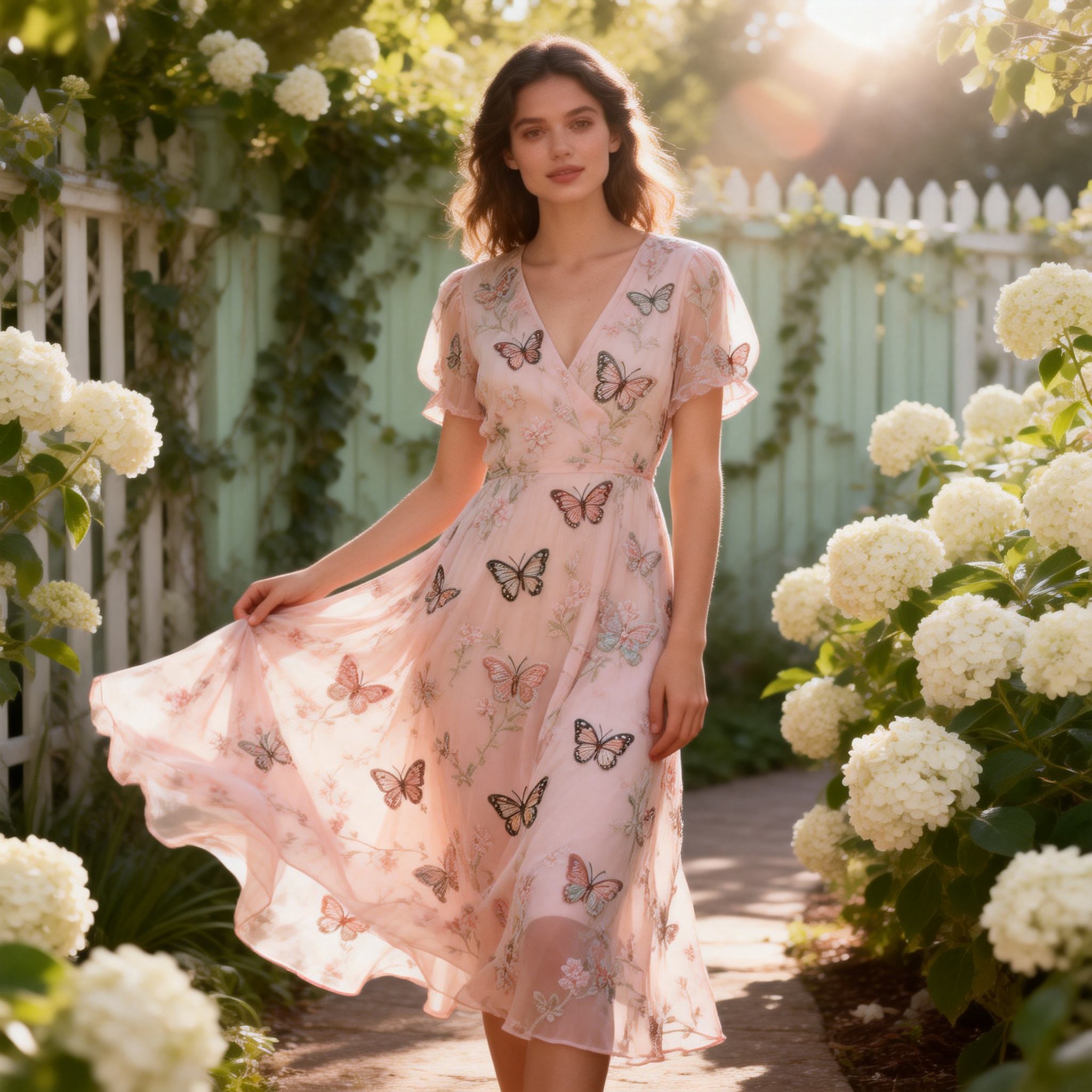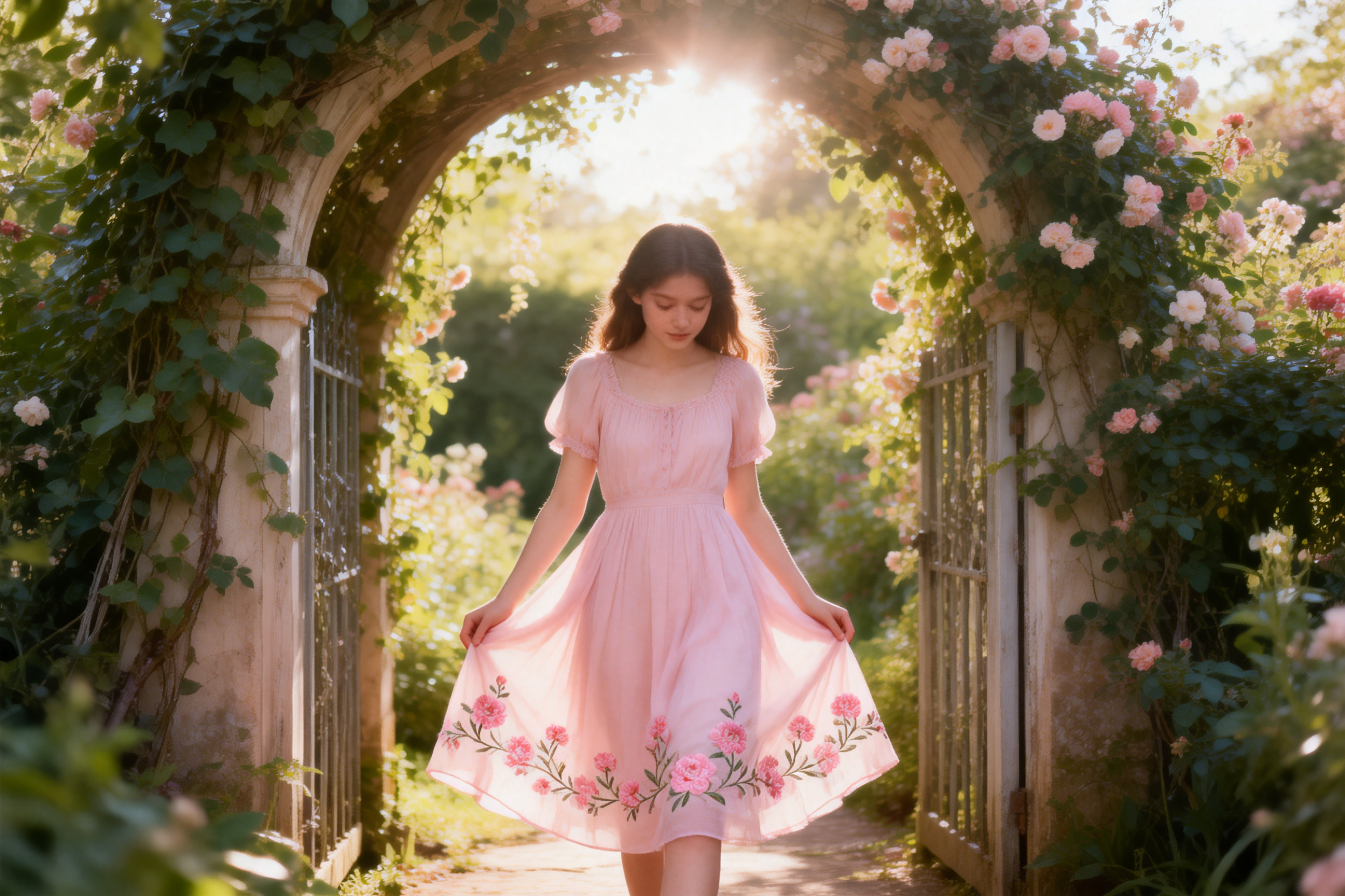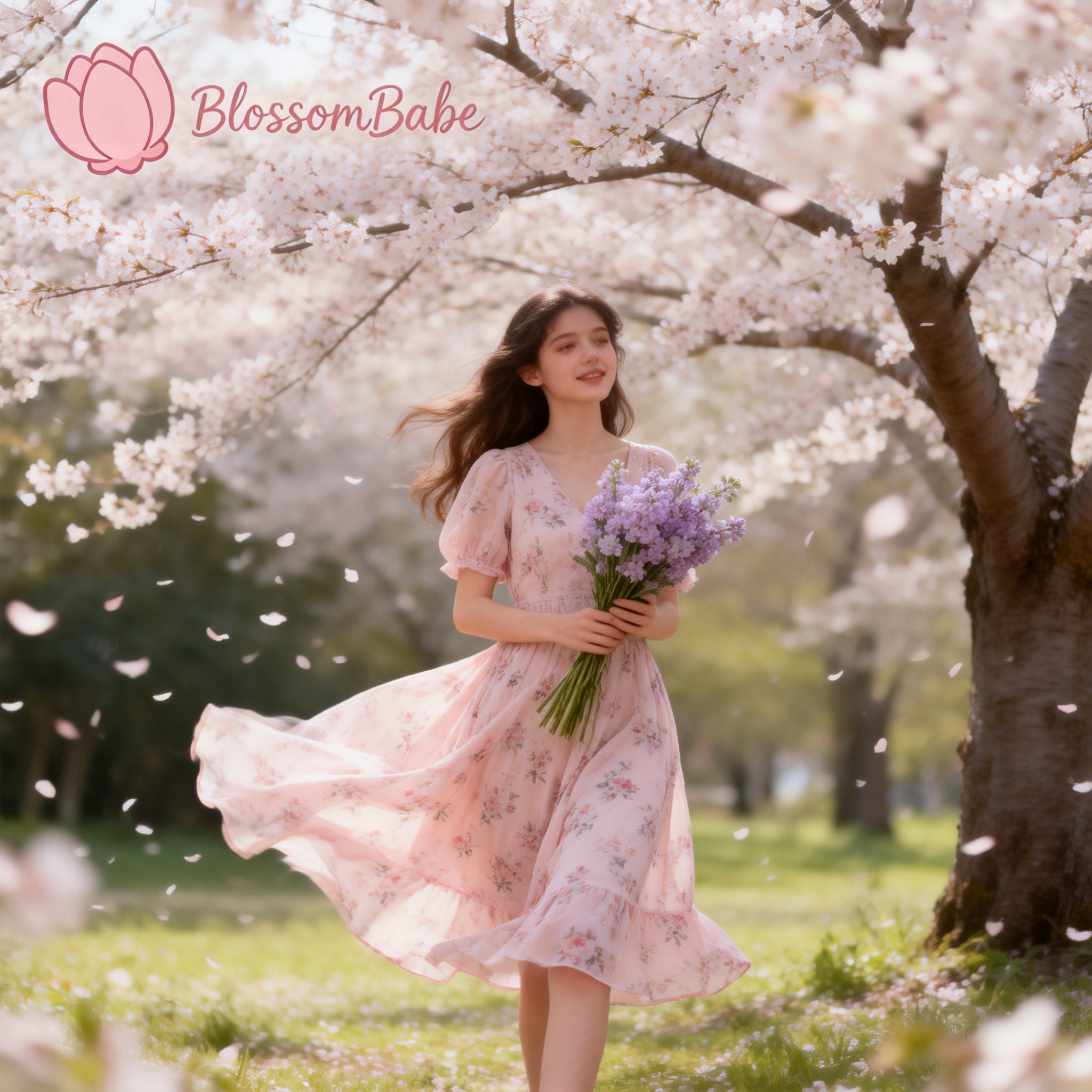 樱花粉雪纺连衣裙,轻盈飘逸,柔美温婉,如春日初绽的绯色芳华。